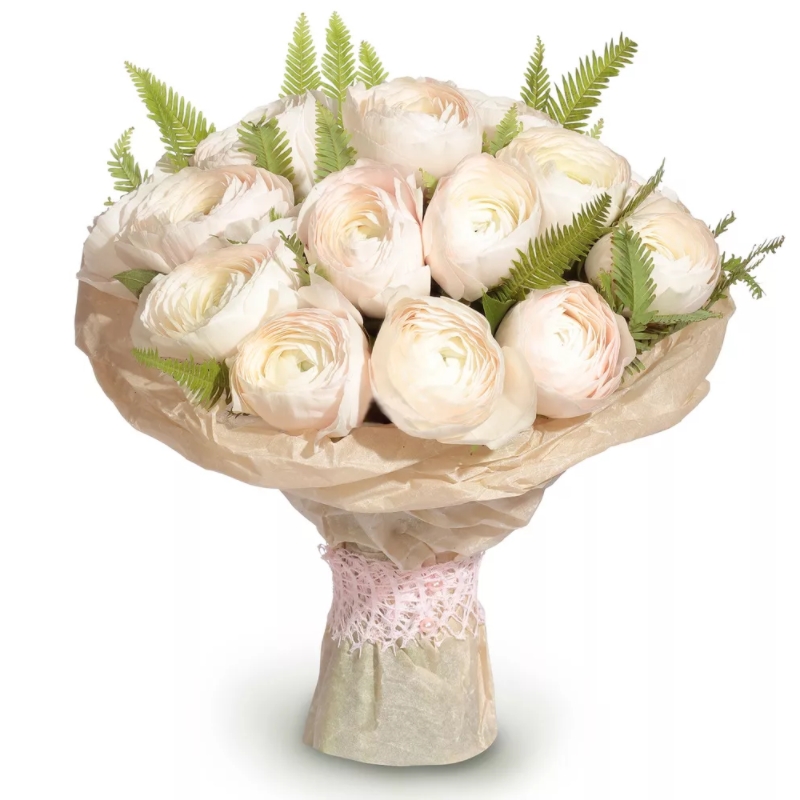 Букет состоит из 21 ранункулюс, зелень, крафт, лента.