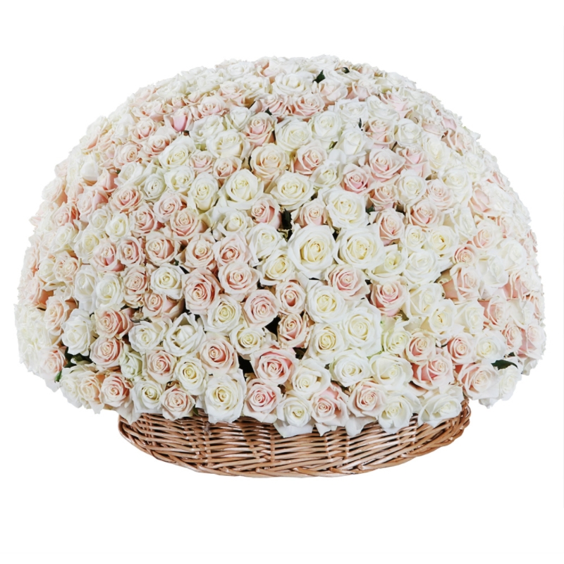 MIX из 501 белой и розовой розы, корзина, оазис.